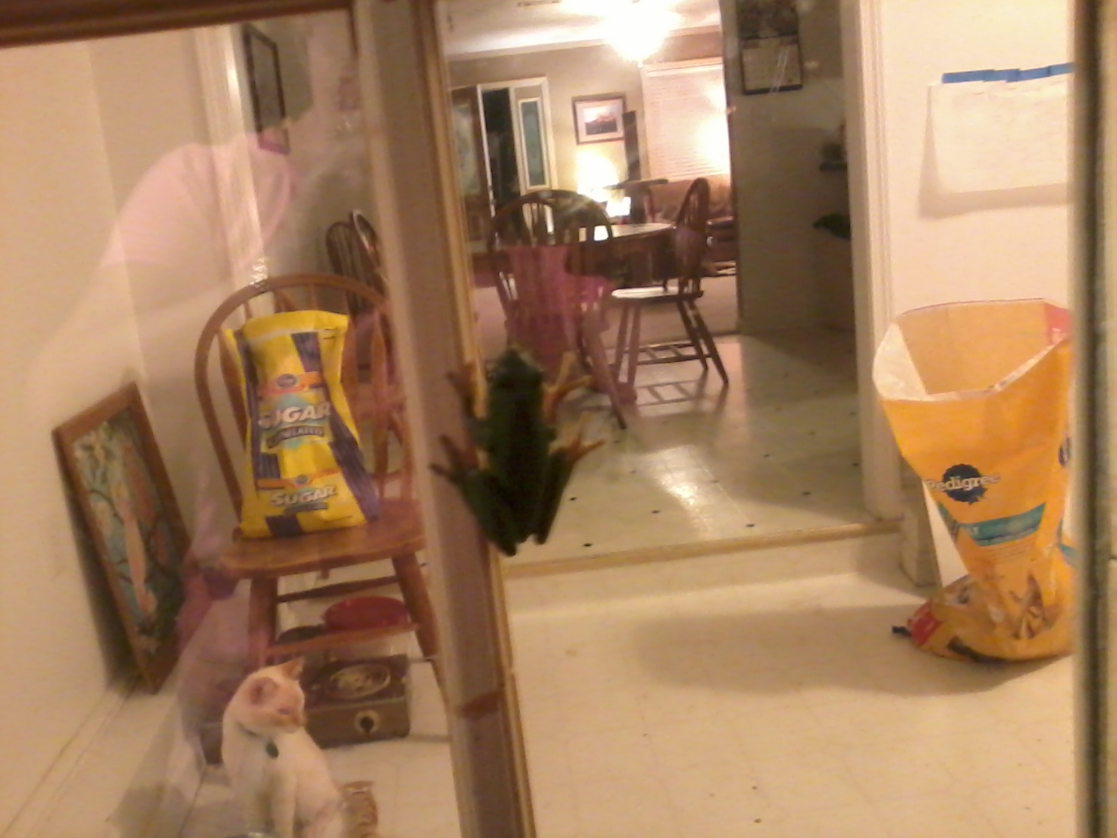 Well, last night we had a visitor on our back door that reminded me of that poem and that assignment. I still have that anthology, so I pulled out that poem and I will share with you and then the photo of our visitor. Granted, our visitor was a frog and not a toad but they are easily mistaken by people, so we will just pretend. Okay?